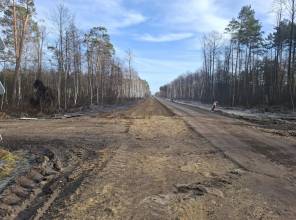 Ścieżka jest oddzielona od drogi wojewódzkiej rowem odwadniającym.