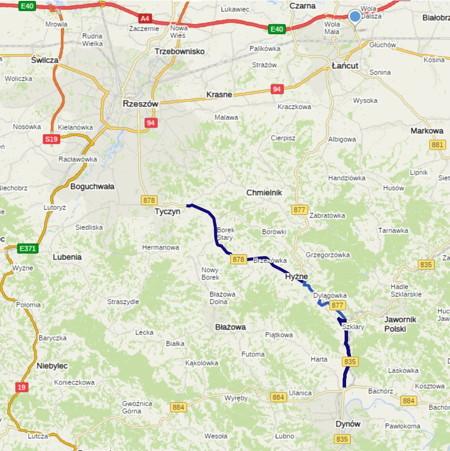 Na pierwszym docinku Tyczyn - Dylągówka trasa przechodzi przez mocno zurbanizowany teren. Realizacja inwestycji w takiej lokalizacji wraz z bardzo wysokim średniodobowym obciążeniem ruchu wynoszącym 12 565 pojazdów na dobę (dane z GPR 2020) i przy utrzymaniu ciągłości ruchu jest wyzwaniem. Inwestycja zakłada rozbudowę wojewódzkiej nr 878 na odcinku o długości 13,78 km w m. Kielnarowa, Borek Stary, Nowy Borek, Hyżne, Brzezówka, Dylągówka do drogi klasy G o nośności 115 kN/oś wraz z przebudową lub rozbudową infrastruktury.