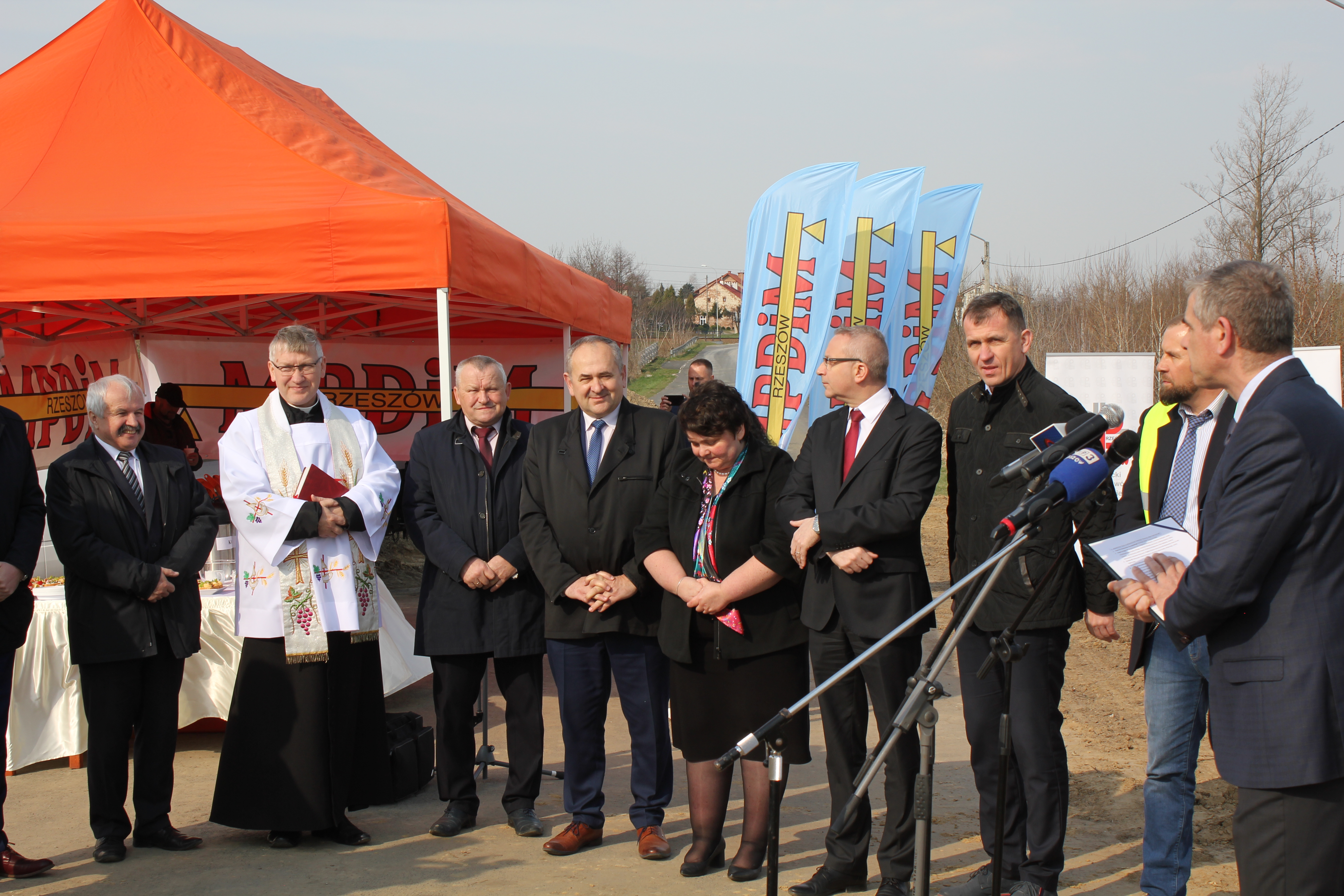W uroczystości symbolicznego wbicia łopaty udział wzięli m.in. podsekretarz stanu w Ministerstwie Inwestycji i Rozwoju Adam Hamryszczak, wojewoda podkarpacki Ewa Leniart, senator Zdzisław Pupa, burmistrz Sędziszowa Małopolskiego Bogusław Kmieć, dyrektor PZDW Piotr Miąso i przedstawiciele Wykonawcy.