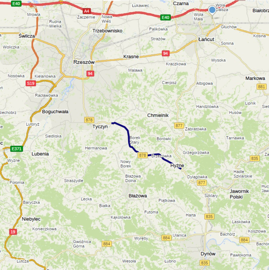 - rozbudowę wojewódzkiej nr 878 na odcinku o długości 13,78 km w m. Kielnarowa, Borek Stary, Nowy Borek, Hyżne, Brzezówka, Dylągówka wraz z niezbędnym dowiązaniem sytuacyjnym i wysokościowym do istniejącego przebiegu drogi wojewódzkiej nr 878 na początku i końcu odcinka (droga klasy G, nośność: 115 kN/oś),