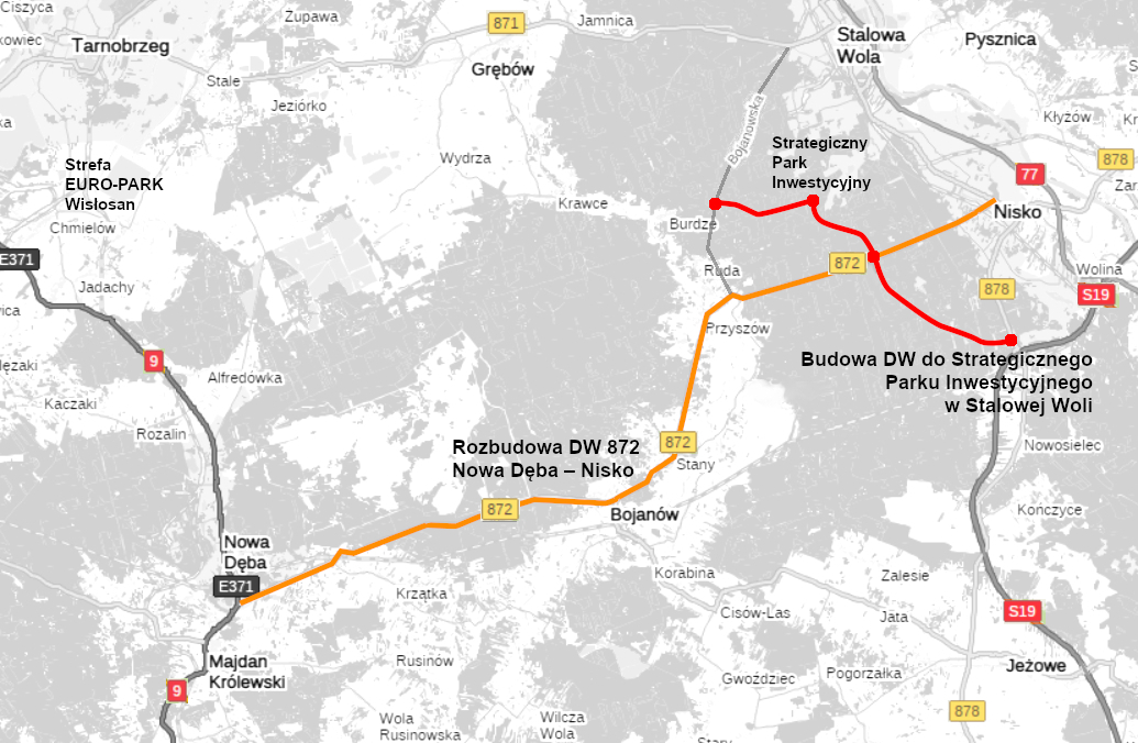 Przedmiotem projektu jest przebudowa/rozbudowa drogi wojewódzkiej nr 872 na odcinku od skrzyżowania z DK9 (ul. Bieszczadzkiej) w Nowej Dębie do skrzyżowania z ulicą Sandomierską w Nisku.